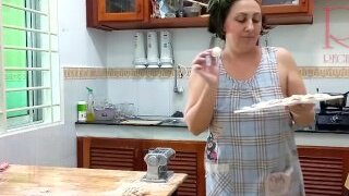 Ravioli Time! Nude Cooking. Regina Noir, a nudist cook at nudist hotel resort. Nude maid. Naked hou