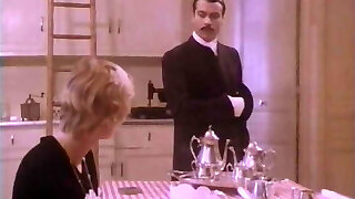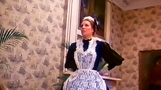 Vintage looking brunette maid serves her landlord with sucky-sucky