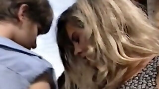 Gorgeous platinum-blonde milf with sunglasses feels nasty for a young country girl
