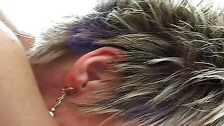 Kurzhaarige Milf wird vom Kammeramann gefistet