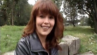 Dark haired German chick with puny tits loves dildoing her cootchie