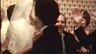 Salami hungry blonde bride provides her bandaged groom with blowjob