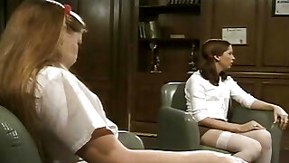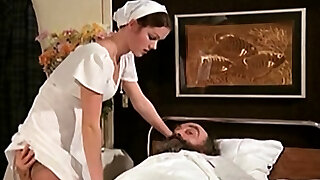 Provocative nurse in sexy uniform and stockings rides pole face to face