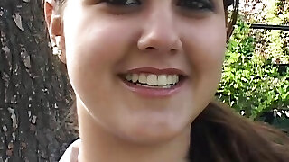 A chubby German girl trying out multiple jizz-shotguns