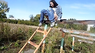 Pissing Fetish Mature Milf Sitting On Stairs Outdoor Freaks Retro
